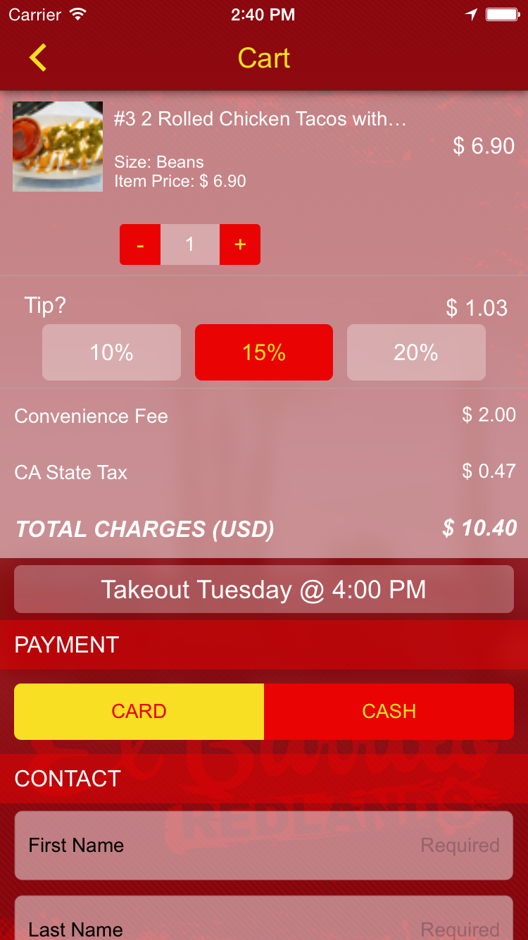 - Optional tip feature